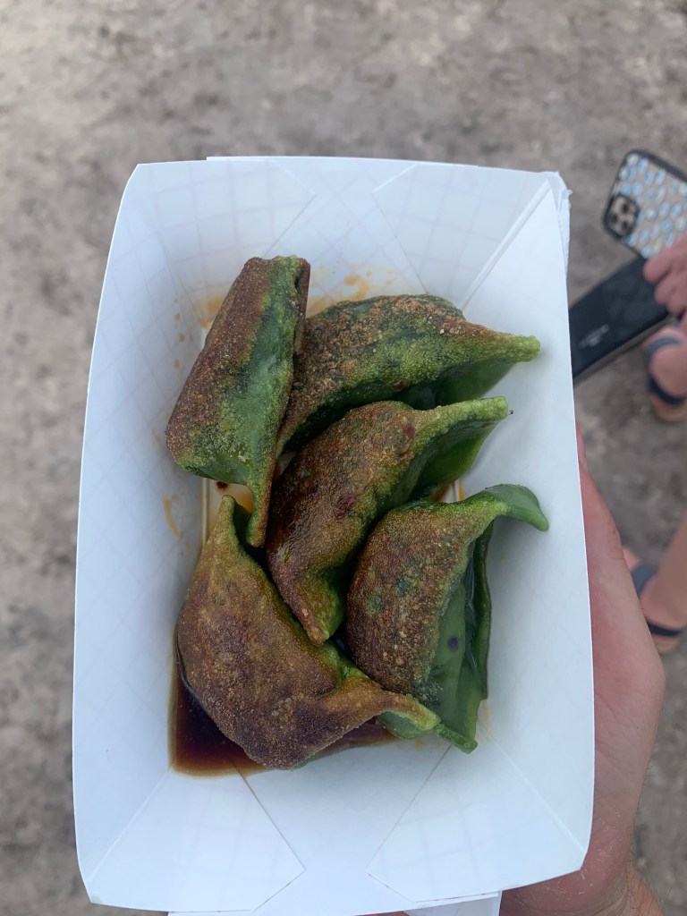 - The Good Shit: These dumplings were freshly pan fried right in front of me and were served piping hot with a soy sauce-based dipping sauce. The wrapper was chewy and crispy, and the sauce had a nice smokiness to it.