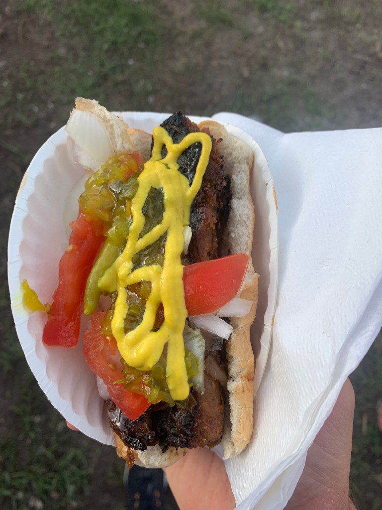 - The Good Shit: The hot dog was a textured vegetable protein mix that had plenty of flavor and char. There was no “casing,” but I wasn’t asking for one. The relish, mustard, and raw onion provided some sweetness and zing, and the peppers gave it a little kick.