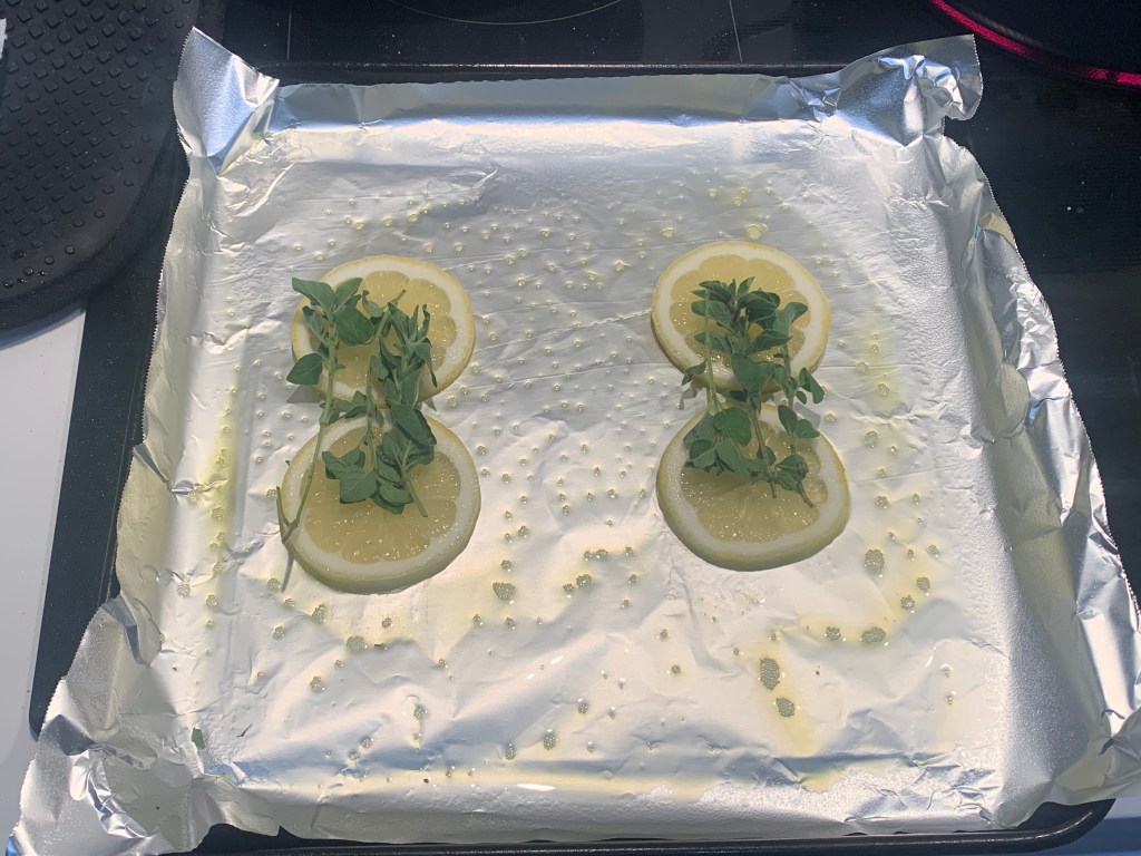 I started with chicken breast marinated in lemon juice, lemon zest, salt, pepper, olive oil, and chopped dill. Before baking, I had the genius idea of laying down sliced lemon and oregano sprigs to impart some extra flavor and moisture and prevent the bottoms from overcooking. In hindsight, the rind of the lemon slice gave off a slightly bitter taste from the pith, so I might avoid this next time. But that’s the beauty of cooking. Experimentation and adjustment. The chicken came out a tad dry, but not too bad. And the dill on top looked uneven and a bit unappetizing. But just close your eyes and pretend it’s a girl. Er… I mean… pretend it looks tasty. It could have used an accompanying sauce, but I’m too stupid and lazy to think one up and then make it.
